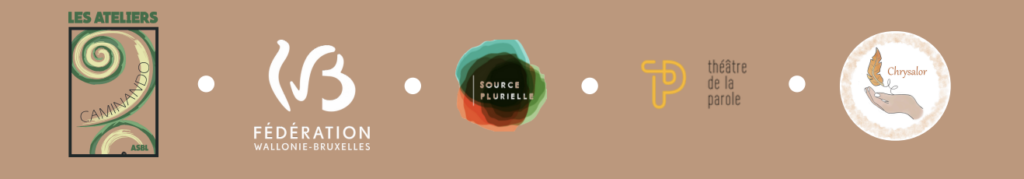 Produit par Les Ateliers Caminando ASBL, avec le soutien et l’aide de la Fédération Wallonie-Bruxelles, Service Général de la Création Artistique, du Théâtre de la Parole, du Dé à coudre, et de Source plurielle ASBL,Illustration : Nesyliss